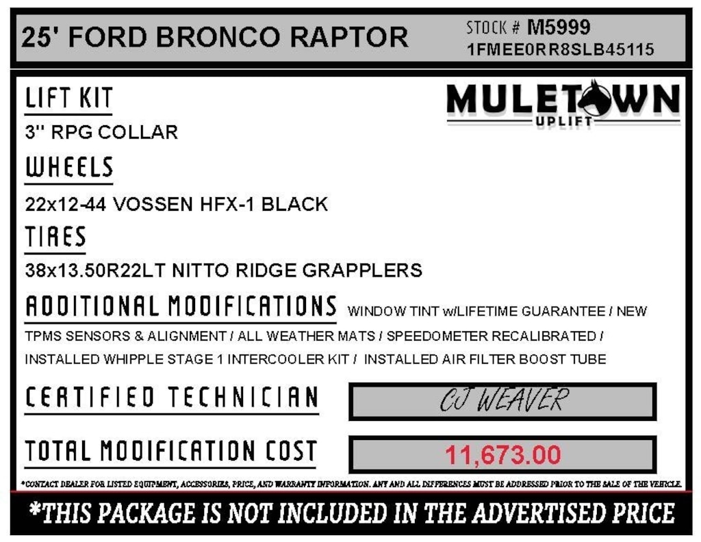 All Prices exclude any Upgrades or Muletown Uplift packages. See Dealer for details!