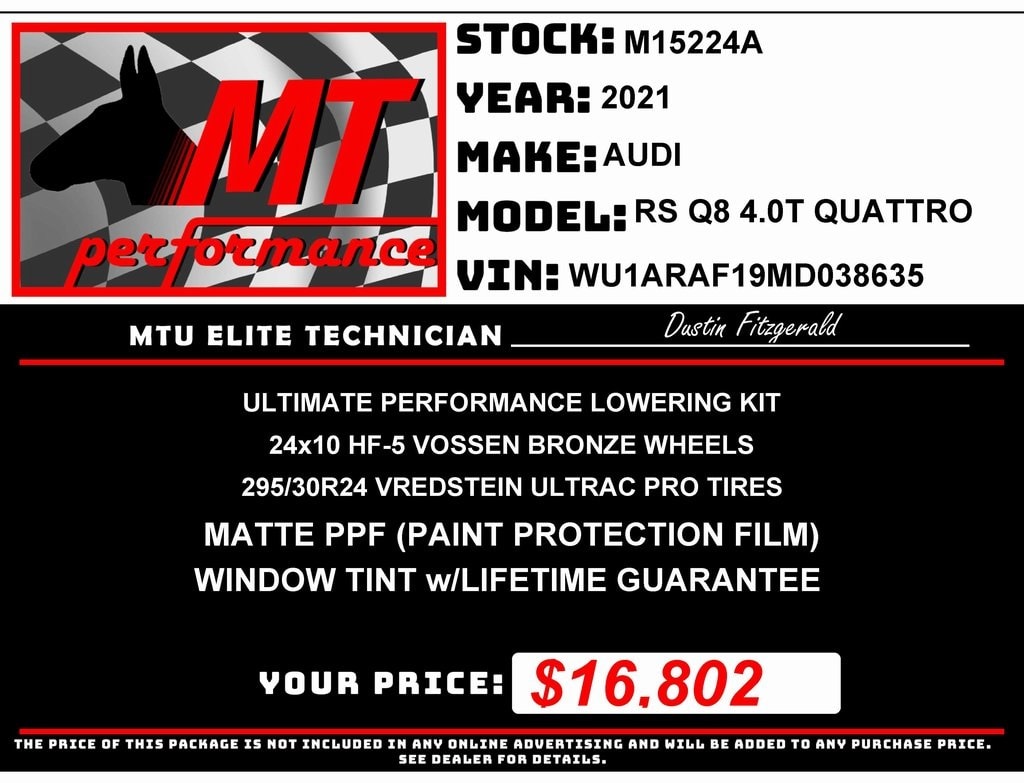 RS Q8 4.0T Muletown Custom Vehicle, 4D Sport Utility, 4.0L V8 Turbocharged DOHC 32V LEV3-ULEV125 591hp.