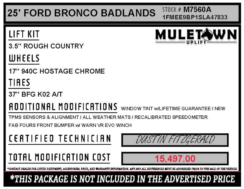 All Prices exclude any Upgrades or Muletown Uplift packages. See Dealer for details!