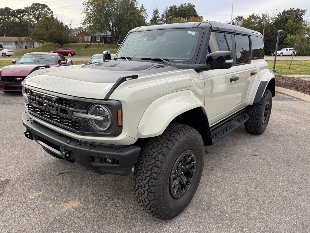 3.0L EcoBoost V6 Bronco Raptor, 4D Sport Utility, 3.0L EcoBoost V6, 4WD, ABS brakes, Auto High-beam Headlights, Auto-dimming Rear-View mirror, Brake assist, Connected Navigation, Delay-off headlights, Equipment Group 374A Lux Package, Exterior Parking Camera Rear, Front Bucket Seats, Front Center Armrest, Front dual zone A/C, Front fog lights, Fully automatic headlights, Glass rear window, Gloss Black Sideview Mirror Skull Caps, Heated door mirrors, Heated front seats, Heated steering wheel, Interior Carbon Fiber Pack, Leather Shift Knob, Power door mirrors, Radio: B&O Sound System by Bang & Olufsen, Raptor Black Appearance Package, Rear window wiper, Remote keyless entry, SiriusXM w/360L, Speed control, Split folding rear seat, Steering wheel mounted audio controls, SYNC 4, Telescoping steering wheel, Tilt steering wheel, Turn signal indicator mirrors, Variably intermittent wipers, Wheels: 17" Dark Carbonized Gray Alloy Painted.