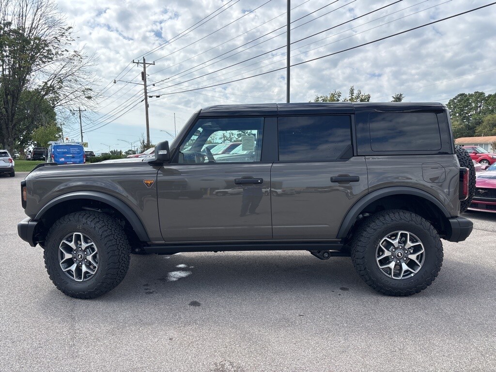 2.7L EcoBoost V6 Bronco Badlands, 4D Sport Utility, 4WD, Marsh Gray, 2-Door Intelligent Access w/Lock/Unlock, 360-Degree Camera, 4.46 Axle Ratio, ABS brakes, Adaptive Cruise Control, Ambient Footwell Lighting, Auto High-beam Headlights, Auto-dimming Rear-View mirror, Black Appearance Package, Black Molded-In-Color Door Handles, Black Molded-In-Color Fender Flares, Black Molded-In-Color Sideview Mirror Caps, Black-Painted Molded-In-Color Grille, Brake assist, Connected Navigation, Delay-off headlights, Dr & Pass Illuminated Sliding Visor Vanity Mirrors, Dual Smart Charging USB Ports, Dual-Zone Electronic Automatic Temperature Control, Equipment Group 334A Lux Package, Evasive Steering Assist, Exterior Parking Camera Rear, Front Bucket Seats, Front Center Armrest, Front fog lights, Front Parking Sensors, Front Row Heated Seats, Fully automatic headlights, Hard Top Sound Deadening Headliner, Heated door mirrors, Heated front seats, Information on Demand Panel, Leather Shift Knob, Power door mirrors, Power Outlet - Back Side of Center Floor Console, Radio: B&O Sound System by Bang & Olufsen, Rear Parking Sensors, Remote keyless entry, Sideview Mirrors, SiriusXM w/360L, Split folding rear seat, Steering wheel mounted audio controls, SYNC 4, Telescoping steering wheel, Tilt steering wheel, Universal Garage Door Opener, Wheels: 17" Carbonized Gray-Painted Aluminum.