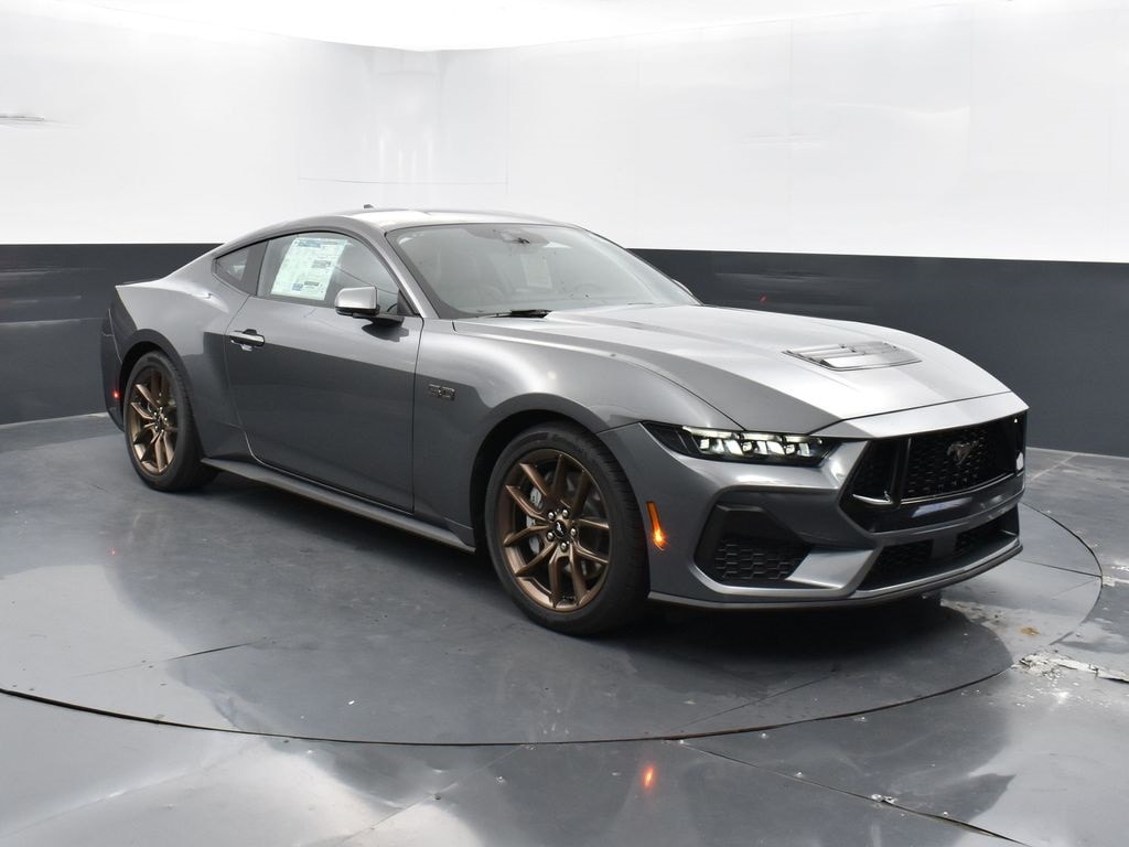 5.0L V8 Ti-VCT 2D Coupe, 5.0L V8 Ti-VCT, 3.15 Limited-Slip Rear-Axle, ABS brakes, Active Anti-Theft System, Alloy wheels, Auto High-beam Headlights, Auto-dimming Rear-View mirror, Brake assist, Bronze Appearance Package, Climate Controlled Heated/Cooled Front Seats, Compass, Connected Navigation, Delay-off headlights, Driver Seat & Mirrors Memory, Electronic Stability Control, Equipment Group 401A High Package, Exterior Parking Camera Rear, Ford Co-Pilot360 Assist+, Front Bucket Seats, Front Center Armrest, Front dual zone A/C, Fully automatic headlights, Heated door mirrors, Heated steering wheel, Illuminated Door-Sill Scuff Plates, Illuminated entry, Integrated Turn Signals, Leather Shift Knob, Leather steering wheel, Leather-Trimmed Bucket Seats, Leather-Trimmed Bucket Seats w/Color Accents, Locking Center Console, Low tire pressure warning, Power driver seat, Power passenger seat, Pre-Collision Assist w/Automatic Emergency Braking, Rear Parking Sensors, Remote keyless entry, Security Package, Sinister Bronze GT 5.0 & Pony Badges, SiriusXM w/360L, Speed control, Split folding rear seat, Spoiler, Steering wheel mounted audio controls, SYNC 4, Telescoping steering wheel, Tilt steering wheel, Traction control, Turn signal indicator mirrors, Wheel Locking Kit, Wheels: 19" x 8.5" Sinister Bronze Painted Alum.