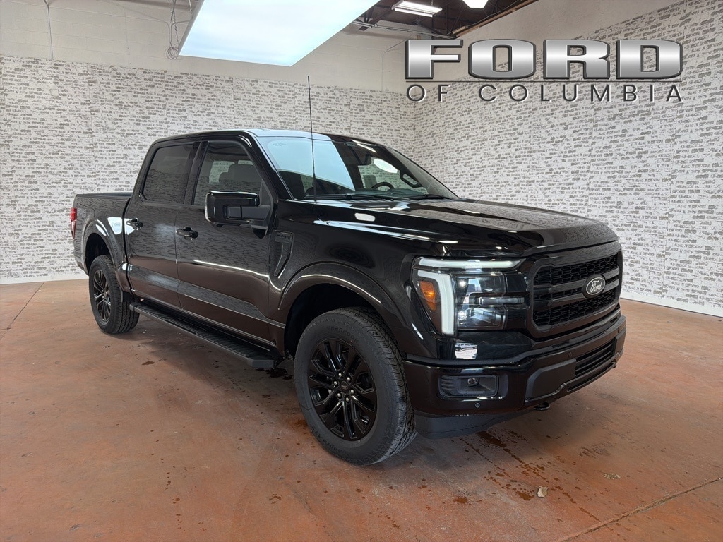 5.0L V8 F-150 Lariat, 4D SuperCrew, 5.0L V8, 4WD, 4x4 FX4 Off-Road Bodyside Decal, 6" Angular Bright Anodized Step Bar, ABS brakes, ActiveX Trimmed Bucket Seats, Auto High-beam Headlights, Auto-dimming door mirrors, Auto-dimming Rear-View mirror, Black Exterior Badging, Black Grille, Black Taillamp Bezels, Body-Color Front and Rear Bumpers, Brake assist, Dark Interior Appliques, Delay-off headlights, Electronic Locking with 3.31 Axle Ratio, Equipment Group 501A Mid, Ford Connectivity Package (1-Year Included), Front Bucket Seats, Front Center Armrest, Front dual zone A/C, Front fog lights, Fully automatic headlights, FX4 Off-Road Package, Gray Box Side Decal, GVWR: 7,100 lbs Payload Package, Heated door mirrors, Heated front seats, Heated steering wheel, Hill Descent Control, Illuminated Driver and Passenger Visors, Lariat Black Appearance Package, Matte Black Tailgate F-150 Decal, Memory seat, Monotube Rear Shocks, Off-Road Tuned Front Shock Absorbers, Power door mirrors, Power driver seat, Power passenger seat, Power-Adjustable Pedals with Memory, Power-Sliding Rear Window, Radio: B&O Sound System by Bang and Olufsen, Rain sensing wipers, Rear step bumper, Remote keyless entry, Rock Crawl Mode, Speed control, Split folding rear seat, Steering wheel mounted audio controls, SYNC 4 with Enhanced Voice Recognition, Telescoping steering wheel, Tilt steering wheel, Tray Style Floor Liner Without Carpet Mats, Turn signal indicator mirrors, Variably intermittent wipers, Ventilated front seats, Wheels: 20" Gloss Black Painted Aluminum.