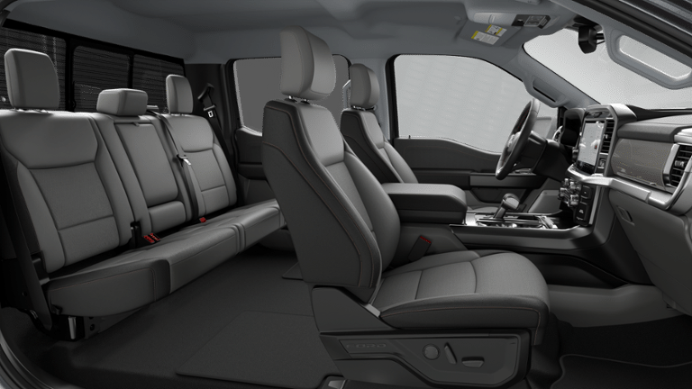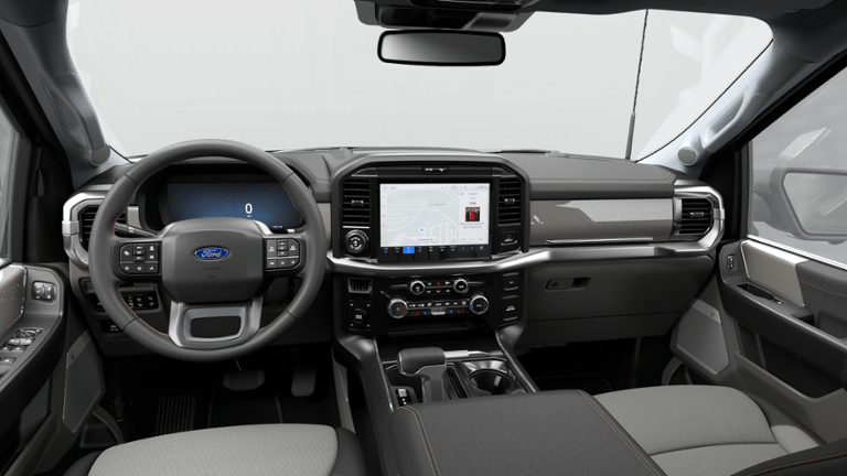 5.0L V8 F-150 Lariat, 4D SuperCrew, 5.0L V8, 4WD, 4x4 FX4 Off-Road Bodyside Decal, 6" Angular Bright Anodized Step Bar, ABS brakes, ActiveX Trimmed Bucket Seats, Auto High-beam Headlights, Auto-dimming door mirrors, Auto-dimming Rear-View mirror, Delay-off headlights, Electronic Locking with 3.31 Axle Ratio, Equipment Group 501A Mid, Ford Connectivity Package (1-Year Included), Front dual zone A/C, Front fog lights, Fully automatic headlights, FX4 Off-Road Package, GVWR: 7,100 lbs Payload Package, Heated door mirrors, Heated front seats, Heated steering wheel, Hill Descent Control, Illuminated Driver and Passenger Visors, Memory seat, Monotube Rear Shocks, Off-Road Tuned Front Shock Absorbers, Power door mirrors, Power driver seat, Power passenger seat, Power-Adjustable Pedals with Memory, Power-Sliding Rear Window, Radio: B&O Sound System by Bang and Olufsen, Rain sensing wipers, Rear step bumper, Remote keyless entry, Rock Crawl Mode, Speed control, Split folding rear seat, Steering wheel mounted audio controls, SYNC 4 with Enhanced Voice Recognition, Telescoping steering wheel, Tilt steering wheel, Tray Style Floor Liner Without Carpet Mats, Turn signal indicator mirrors, Variably intermittent wipers, Ventilated front seats, Wheels: 20" Chrome-Like PVD.