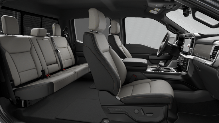 5.0L V8 F-150 Lariat, 4D SuperCrew, 5.0L V8, 4WD, 2nd Row Heated Seats, 3.31 Axle Ratio, 4 Pickup Box Tie-Down Plates, ABS brakes, ActiveX Trimmed Bucket Seats, Ambient Lighting - Ice Blue Color Only, Auto High-beam Headlights, Auto-dimming door mirrors, Auto-dimming Rear-View mirror, Bed Storage Boxes, Bed Utility Package, Brake assist, Console Worksurface, Delay-off headlights, Equipment Group 502A High, Front Bucket Seats, Front Center Armrest, Front dual zone A/C, Front fog lights, Fully automatic headlights, GVWR: 7,100 lbs Payload Package, Head-Up Display, Heated door mirrors, Heated front seats, Heated steering wheel, Illuminated Driver and Passenger Visors, LED Box Lighting, Memory seat, Mobile Office Package, Partitioned Lockable Rear Storage, Power door mirrors, Power driver seat, Power passenger seat, Power-Adjustable Pedals with Memory, Power-Sliding Rear Window, Radio: B&O Unleashed Sound System by Bang & Olufsen, Rain sensing wipers, Rear step bumper, Remote keyless entry, Speed control, Split folding rear seat, Steering wheel mounted audio controls, SYNC 4 with Enhanced Voice Recognition, Tailgate Step with Work Surface, Telescoping steering wheel, Tilt steering wheel, Turn signal indicator mirrors, Variably intermittent wipers, Ventilated front seats, Wheels: 20" Chrome-Like PVD, Wireless Charging.