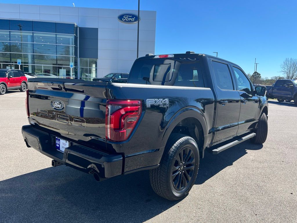 5.0L V8 F-150 Lariat, 4D SuperCrew, 5.0L V8, 4WD, Agate Black Metallic, 4x4 FX4 Off-Road Bodyside Decal, 6" Angular Bright Anodized Step Bar, ABS brakes, ActiveX Trimmed Bucket Seats, Auto High-beam Headlights, Auto-dimming door mirrors, Auto-dimming Rear-View mirror, Black Exterior Badging, Black Grille, Black Taillamp Bezels, Body-Color Front and Rear Bumpers, Body-Color Skull Caps and Door Handles, Brake assist, Dark Interior Appliques, Delay-off headlights, Electronic Locking with 3.31 Axle Ratio, Equipment Group 501A Mid, Ford Connectivity Package (1-Year Included), Front Bucket Seats, Front Center Armrest, Front dual zone A/C, Front fog lights, Fully automatic headlights, FX4 Off-Road Package, Gray Box Side Decal, Heated door mirrors, Heated front seats, Heated steering wheel, Hill Descent Control, Illuminated Driver and Passenger Visors, Lariat Black Appearance Package, Memory seat, Monotube Rear Shocks, Off-Road Tuned Front Shock Absorbers, Power door mirrors, Power driver seat, Power passenger seat, Power-Adjustable Pedals with Memory, Power-Sliding Rear Window, Radio: B&O Sound System by Bang and Olufsen, Rain sensing wipers, Rear step bumper, Remote keyless entry, Speed control, Split folding rear seat, Steering wheel mounted audio controls, SYNC 4 with Enhanced Voice Recognition, Telescoping steering wheel, Tilt steering wheel, Tray Style Floor Liner Without Carpet Mats, Turn signal indicator mirrors, Variably intermittent wipers, Ventilated front seats, Wheels: 20" Gloss Black Painted Aluminum.