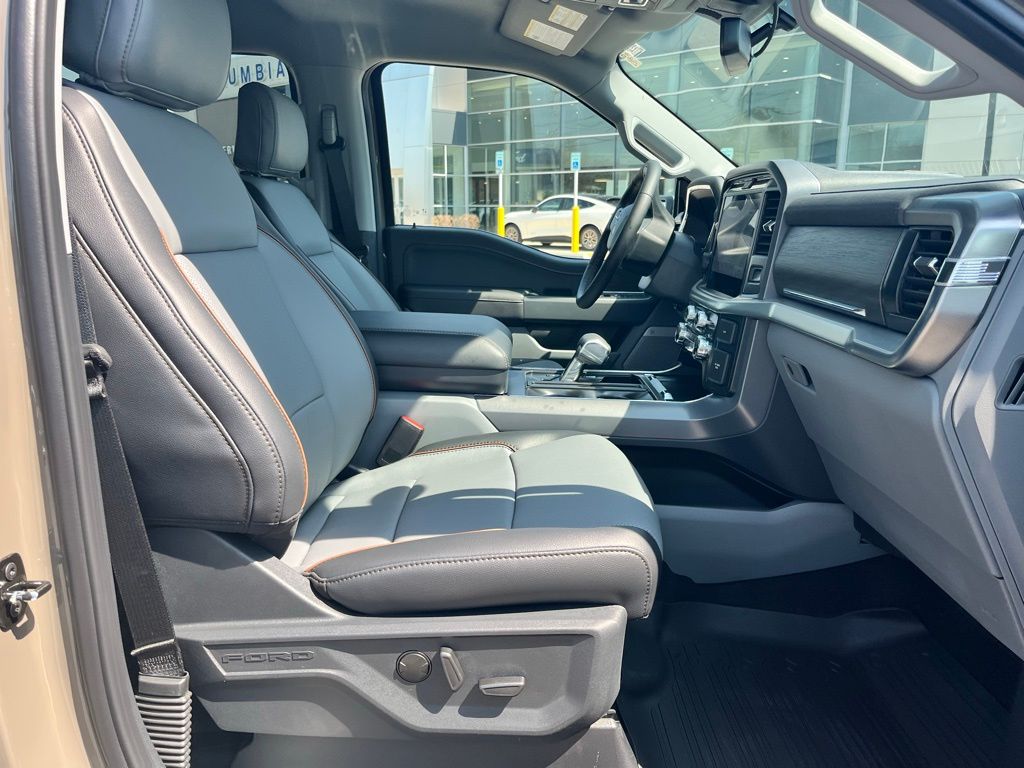 3.5L PowerBoost Full-Hybrid V6 F-150 Lariat, 4D SuperCrew, 3.5L PowerBoost Full-Hybrid V6, 4WD, 4x4 FX4 Off-Road Bodyside Decal, 6" Angular Bright Anodized Step Bar, ABS brakes, ActiveX Trimmed Bucket Seats, Auto High-beam Headlights, Auto-dimming door mirrors, Auto-dimming Rear-View mirror, Brake assist, Delay-off headlights, Electronic Locking with 3.73 Axle Ratio, Equipment Group 501A Mid, Ford Connectivity Package (1-Year Included), Front Bucket Seats, Front Center Armrest, Front dual zone A/C, Front fog lights, Fully automatic headlights, FX4 Off-Road Package, GVWR: 7,400 lbs Payload Package, Heated door mirrors, Heated front seats, Heated steering wheel, Hill Descent Control, Illuminated Driver and Passenger Visors, Memory seat, Monotube Rear Shocks, Off-Road Tuned Front Shock Absorbers, Power door mirrors, Power driver seat, Power passenger seat, Power-Adjustable Pedals with Memory, Power-Sliding Rear Window, Radio: B&O Sound System by Bang and Olufsen, Rain sensing wipers, Rear step bumper, Remote keyless entry, Speed control, Split folding rear seat, Steering wheel mounted audio controls, SYNC 4 with Enhanced Voice Recognition, Telescoping steering wheel, Tilt steering wheel, Tray Style Floor Liner Without Carpet Mats, Turn signal indicator mirrors, Variably intermittent wipers, Ventilated front seats, Wheels: 20" Chrome-Like PVD.