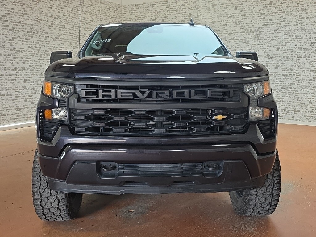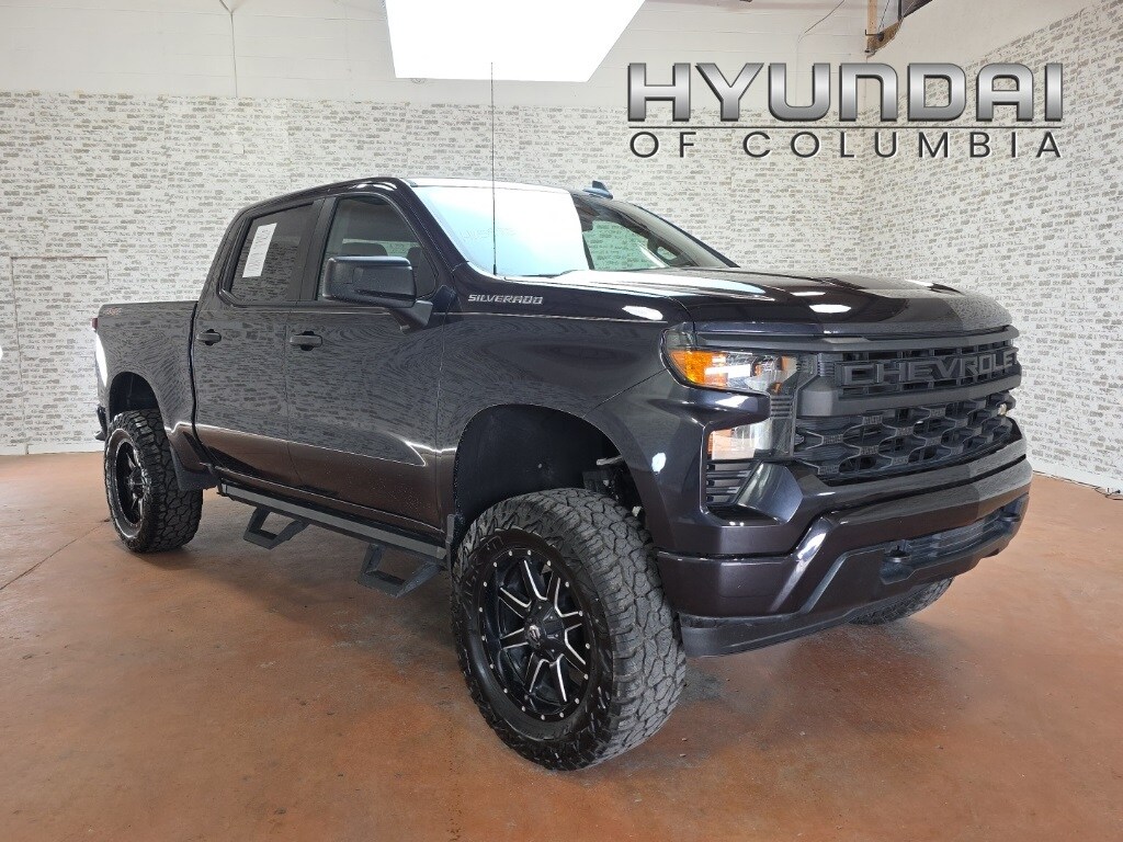 Clean CARFAX. Silverado 1500 Custom, 4D Crew Cab, 4WD, 10-Way Power Driver Seat w/Lumbar, 120-Volt Bed Mounted Power Outlet, 120-Volt Instrument Panel Power Outlet, 3.5" Monochromatic Display Driver Info Center, Bluetooth® For Phone, Chevrolet Connected Access Capable, Color-Keyed Carpeting Floor Covering, Compass, Custom Convenience Package, Custom Value Package, Deep-Tinted Glass, Dual Rear USB Ports (Charge Only), Electric Rear-Window Defogger, Electrical Steering Column Lock, Electronic Cruise Control, EZ Lift Power Lock & Release Tailgate, Front Frame-Mounted Black Recovery Hooks, Front Rubberized Vinyl Floor Mats, HD Rear Vision Camera, High Capacity Suspension Package, Hitch Guidance, LED Cargo Area Lighting, Manual Tilt Wheel Steering Column, OnStar & Chevrolet Connected Services Capable, Power Front Windows w/Driver Express Up/Down, Power Front Windows w/Passenger Express Down, Power Rear Windows w/Express Down, Preferred Equipment Group 1CX, Rear 60/40 Folding Bench Seat (Folds Up), Rear Rubberized-Vinyl Floor Mats, Remote Keyless Entry, Remote Vehicle Starter System, SiriusXM Radio, Standard Tailgate, Theft Deterrent System (Unauthorized Entry), Trailering Package, Wi-Fi Hot Spot Capable, Wireless Phone Projection. Odometer is 2964 miles below market average!