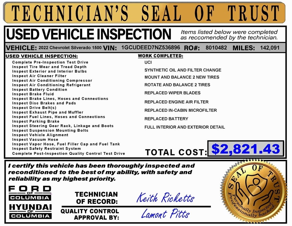 Here at Ford of Columbia, we keep things simple. Our non-commissioned sales team isnât chasing commissions â" theyâre focused on helping you find an used vehicle youâll feel great driving home. Take your time, ask questions, and explore our wide selection of quality pre-owned cars, trucks, and SUVs. Weâre here when youâre ready. Silverado 1500 EcoTec3 5.3L V8 4WD RST