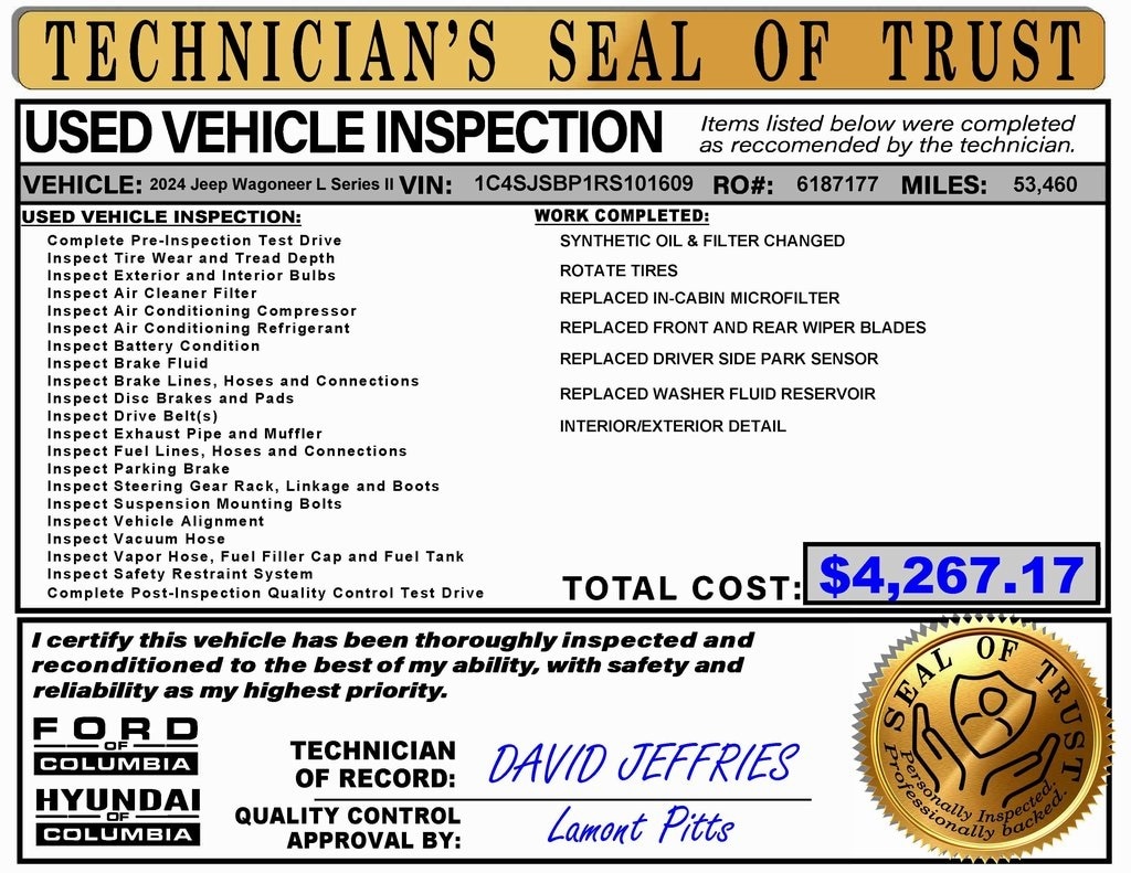 Wagoneer L Series II, 4D Sport Utility, 4WD, Quick Order Package 25J. CARFAX One-Owner.
