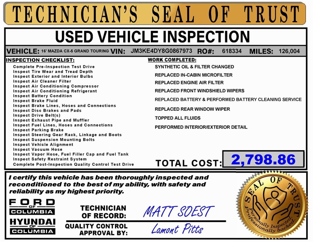 Experience elevated driving in this 2016 Mazda CX-5 Grand Touring, finished in sleek Crystal White Pearl Mica. With 126,003 miles, this all-wheel drive crossover delivers spirited performance, style, and versatility wrapped in a premium package.