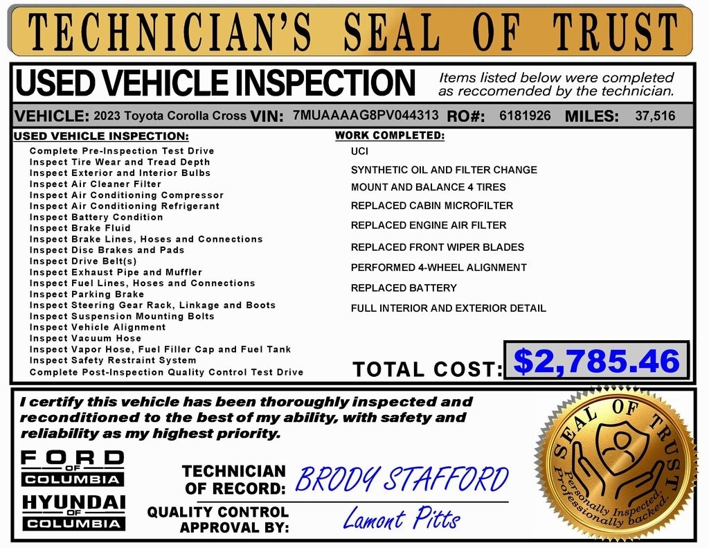 My 2023 Corolla Cross came in after a few months wait from the factory, so far it is a great vehicle with all the Toyota reliability and value that I was looking for. The vehicle is well made, very solid, my only complaint is that I wish they would have used more sound deadening material in its construction. It has a lot of road noise compared to the Hyundia Kona I drove for 4 years. It does come with 2 years of free maint, always a plus. Kudos to my local Toyota dealer in Lawrence Ks, for not adding thousands to the sticker price like some dealers will, due to limited inventory on new cars. Overall, I am looking forward to years of enjoying my new Corolla Cross. - 5.0